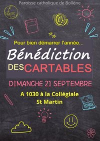 Lors de la messe du dimanche 21 septembre sera donnée une bénédiction des cartables, afin de confier au Seigneur l’année scolaire qui démarre.